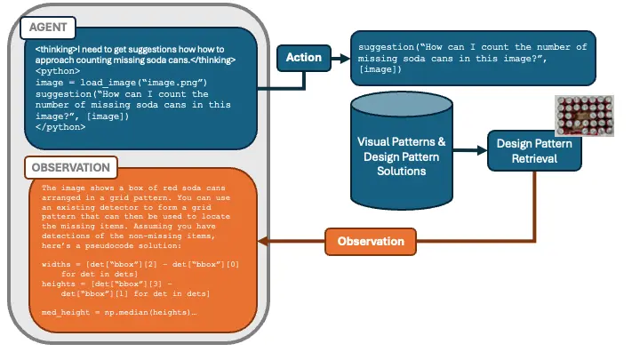Visual Design Patterns – Finally, since VLMs struggle at tasks that require visual reasoning, we need to give the agent a hint by telling it about a design pattern it can use to solve this problem. For example, suggesting that it construct a grid and use the grid to detect missing cans. We will cover this in detail in the next blog post.