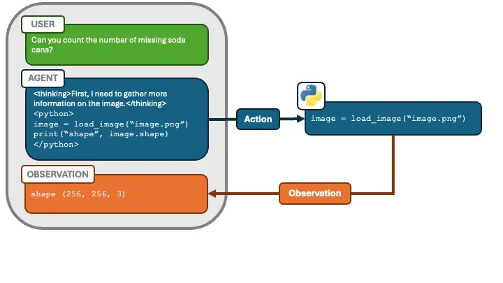 Agentic Tool Selection and Subtasks – The overall problem gets divided into solvable subtasks. For instance, in our running example, the first subtask was formulated to detect soda cans, second subtask for constructing the grid pattern and the final subtask for matching detected soda cans to grid cells to find missing soda cans. For each subtask, optimal tool selection has to be performed agentically.