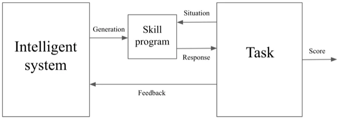 Here, VisionAgent is the “Intelligent system” and the program it generates for a given task is the “Skill program”. Our tasks are different in the sense that they are vision problems so they do not produce a response or score. However, you can also think of our tasks as the human evaluating the VisionAgent solution, who can provide a response to VisionAgent if it does not perform the task correctly or evaluate it with a score
