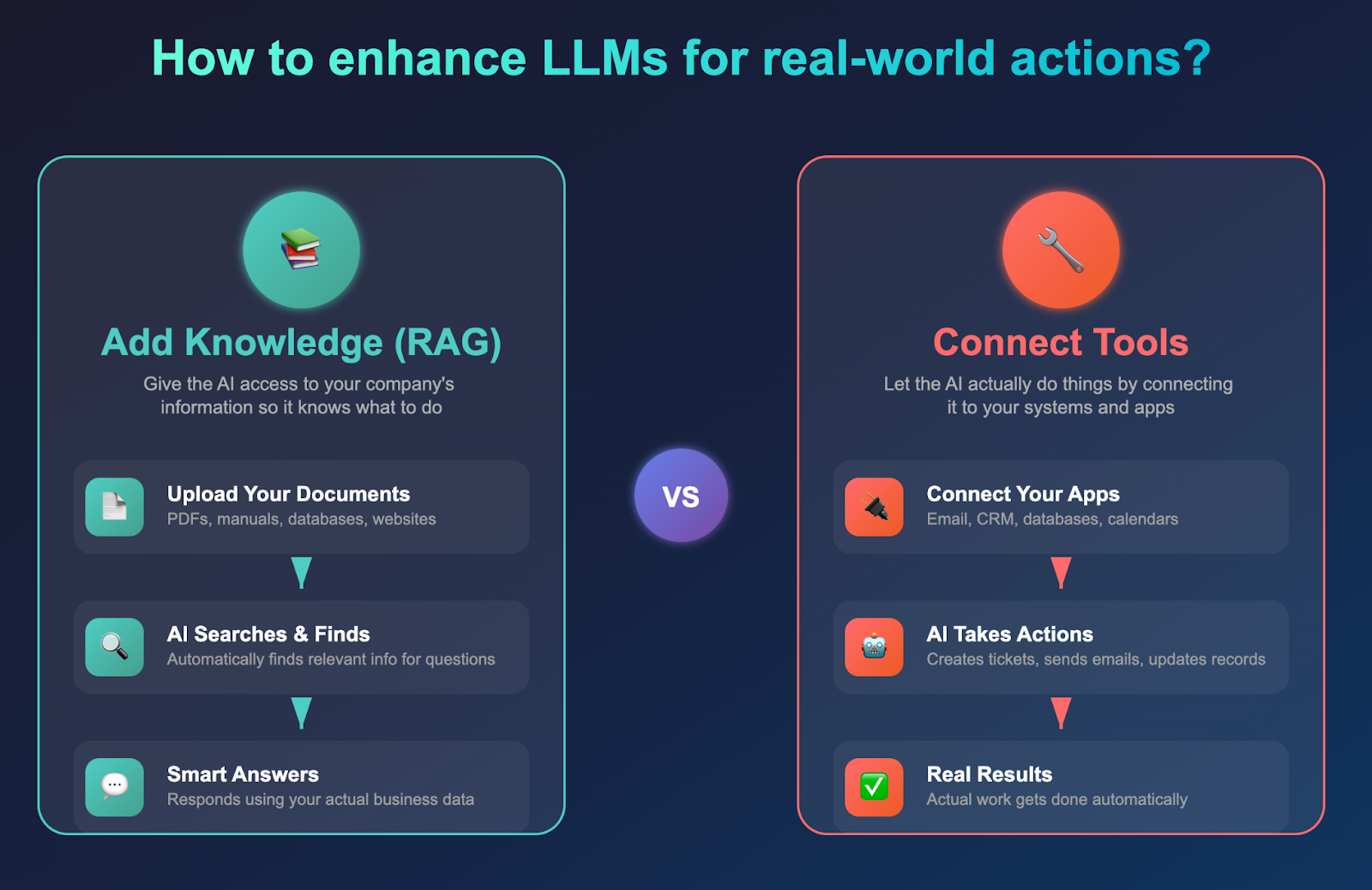If you want to do something—cause real effects in the world—the AI must be able to take actions (invoke tools). It also needs more up-to-date or simply broader information than the base model contains.