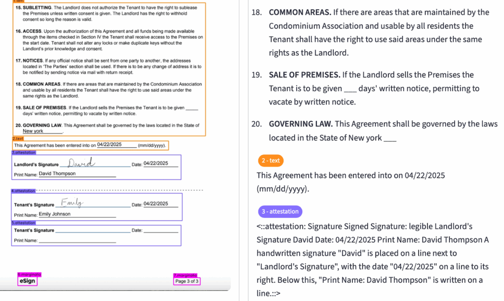 Compliance and Trust****Regulatory filings, loan applications, and insurance claims often require attestations. By detecting signatures and seals explicitly, DPT-2 enables full audit trails.