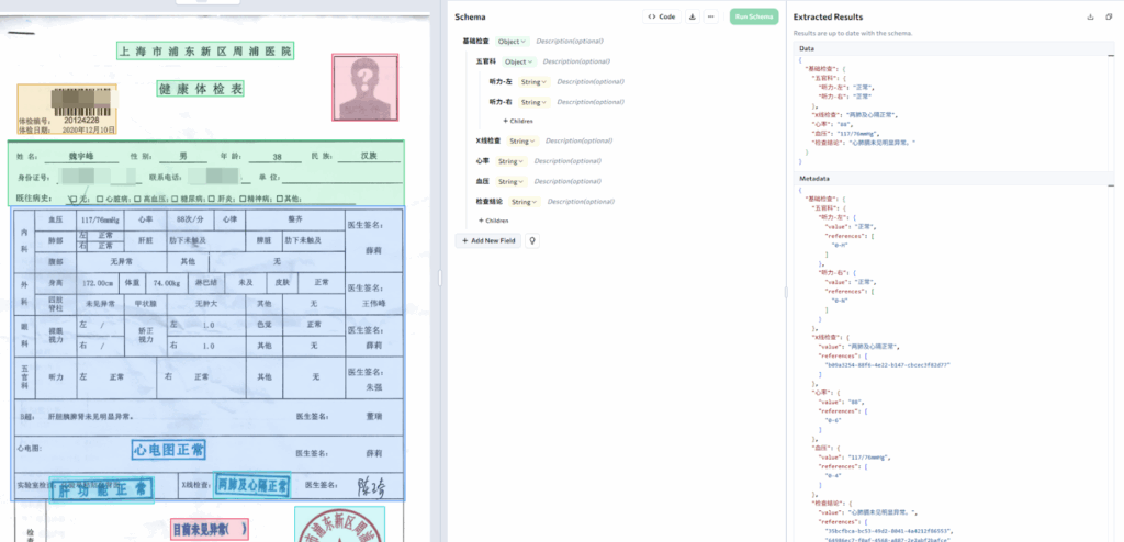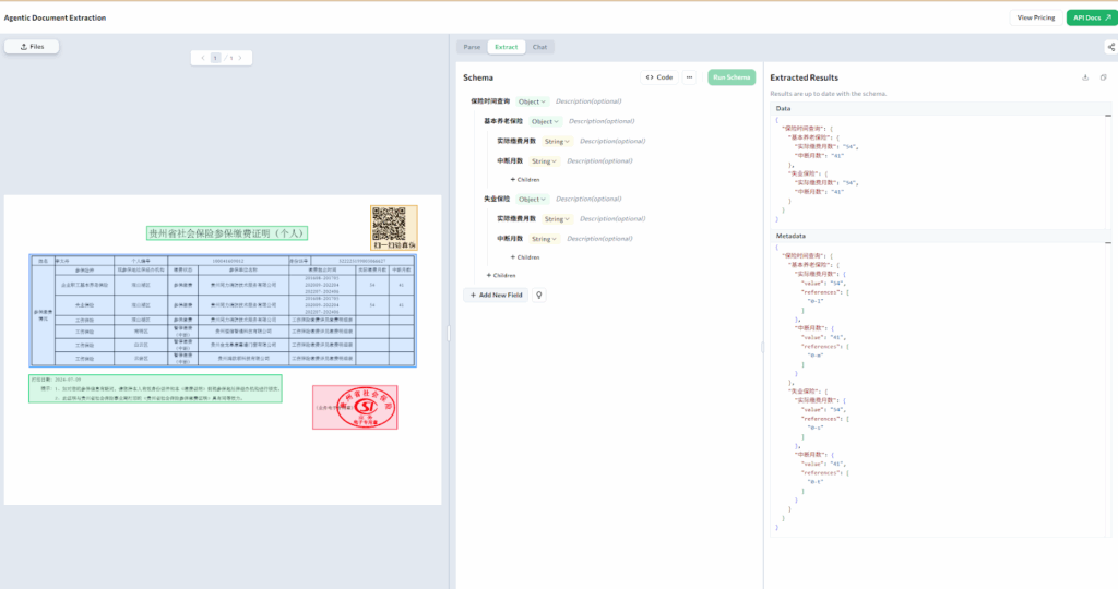 ADE applies the same Chinese schema consistently, using semantic understanding to navigate format variations that confound traditional OCR tools.