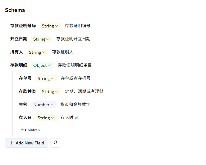 With ADE, organizations define extraction schemas in Chinese targeting only relevant fields: