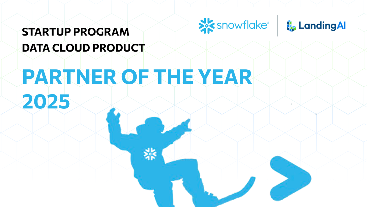 SAN FRANCISCO, JUNE 3, 2025 — LandingAI today announced at Snowflake’s annual user conference, Snowflake Summit 2025, that it has been named the 2025 Startup Program Data Cloud Product Partner of the Year award winner by Snowflake, the AI Data Cloud company.