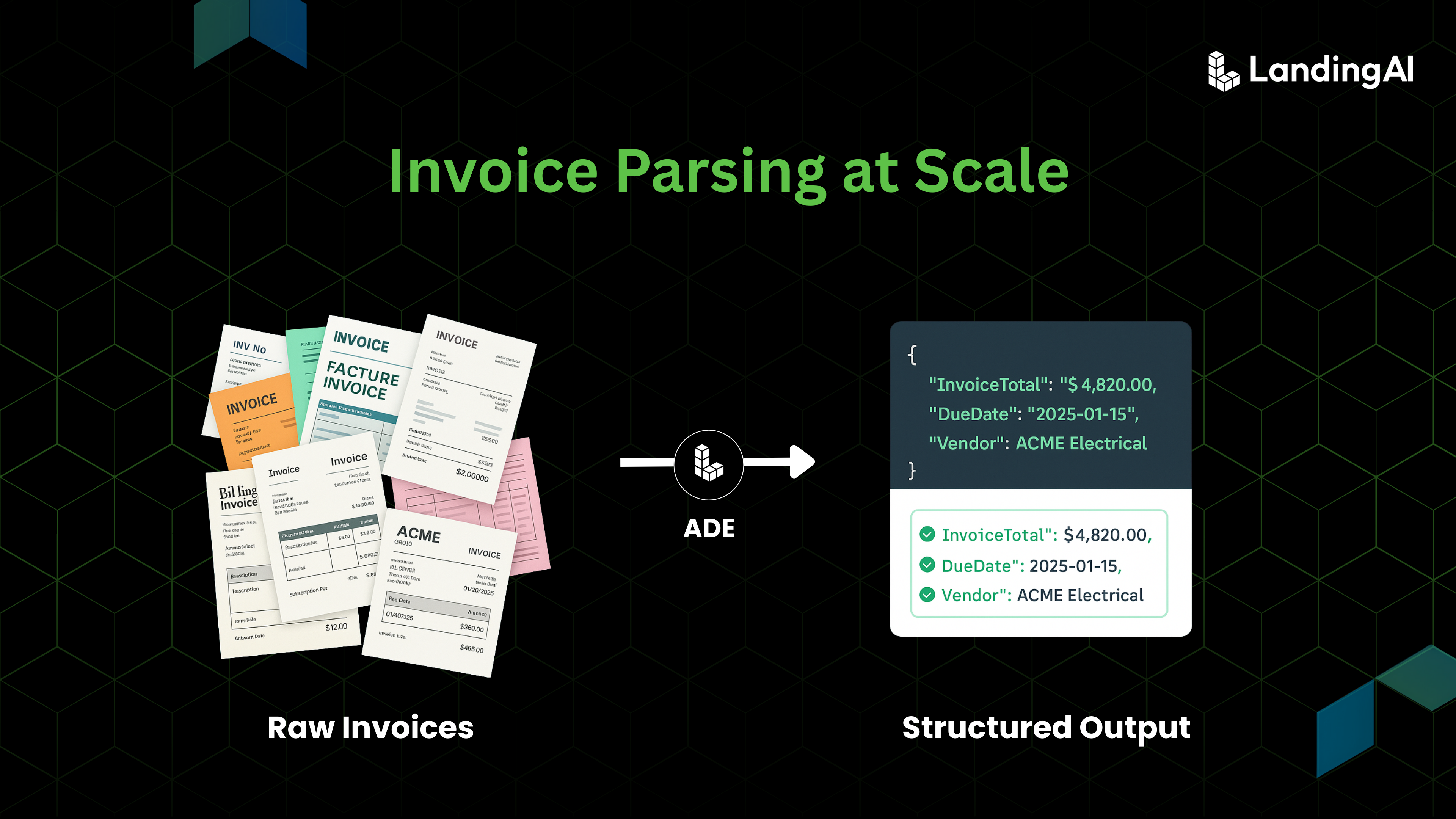Invoices are one of the most common yet difficult documents to automate at scale. Variations in layout, line-item tables, currencies, and scan quality often break traditional OCR and template-based systems. In this post, we explore how Agentic Document Extraction (ADE) parses real-world invoices, grounds every extracted field to its source, and produces reliable, schema-aligned data that holds up across diverse formats and high-volume workflows.