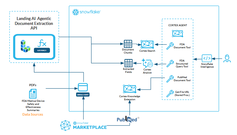 Access LandingAI’s Agentic Document Extraction (ADE) directly through the Snowflake Marketplace. ADE uses zero-shot parsing and field extraction to convert complex documents into structured, analysis-ready data.