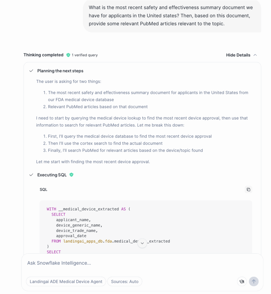 Once parsing using Agentic Document Extraction, you can build an intelligent agent that orchestrates across tools with Cortex Agents.