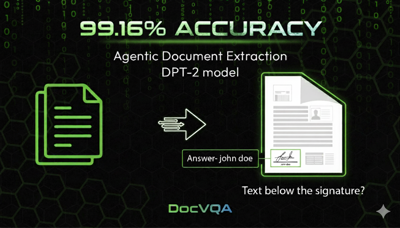 The key takeaway: an LLM can answer 99.16% of DocVQA questions using only the parsed API response from ADE, with no image access during the QA step. Our latest offering, ADE with the Document Pre-trained Transformer 2 (DPT-2) model, looks at the image once to parse, and it captures the document so completely that the QA step can skip pixels and still be right almost every time.
