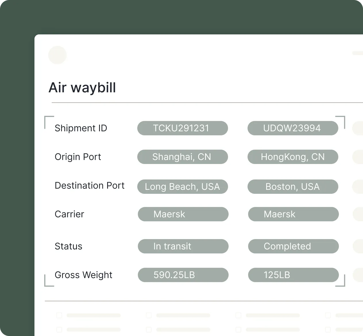 Extract required information from customs declarations and trade documents to streamline compliance workflows.
